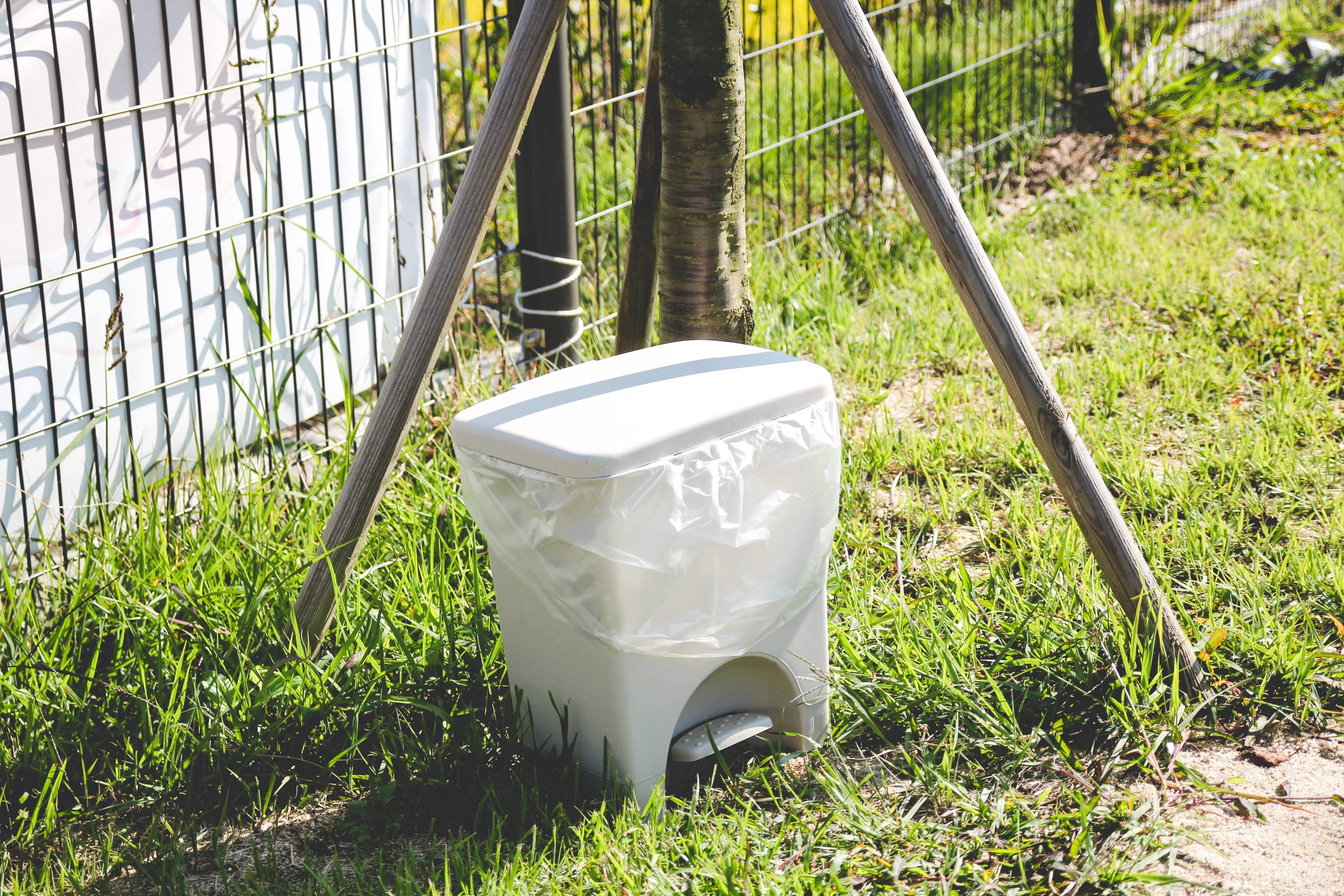 운동장 곳곳에 배변봉투랑 쓰레기통이 있습니다.