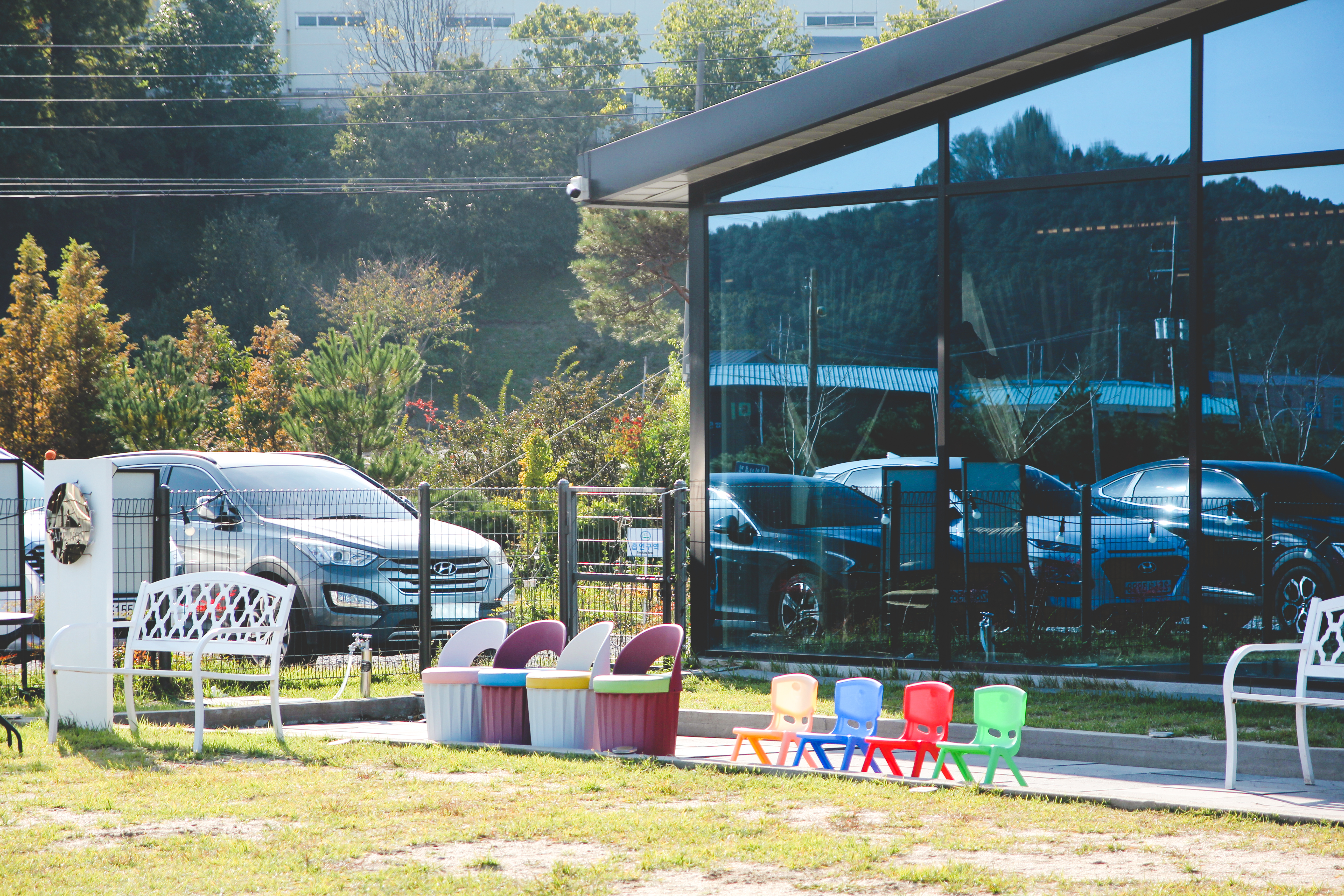 자리도 널널하고 앞에 논이 쫙 펼쳐져있어요. 거리가 있는만큼 동네도 조용하고 좋네요.